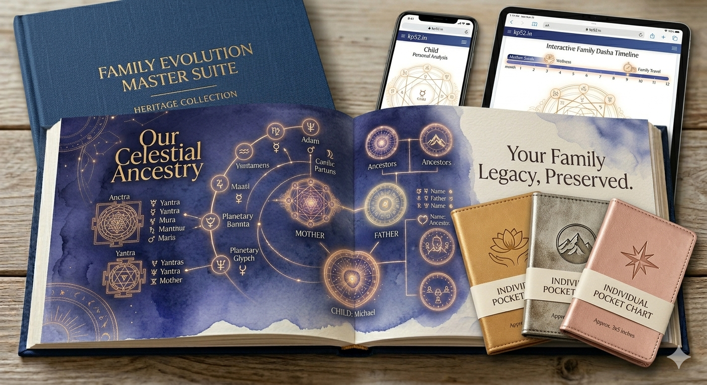1. Individual Blueprints: माता, पिता और बच्चे की गहन कुंडली (सभी लग्न और कारकों के साथ)।